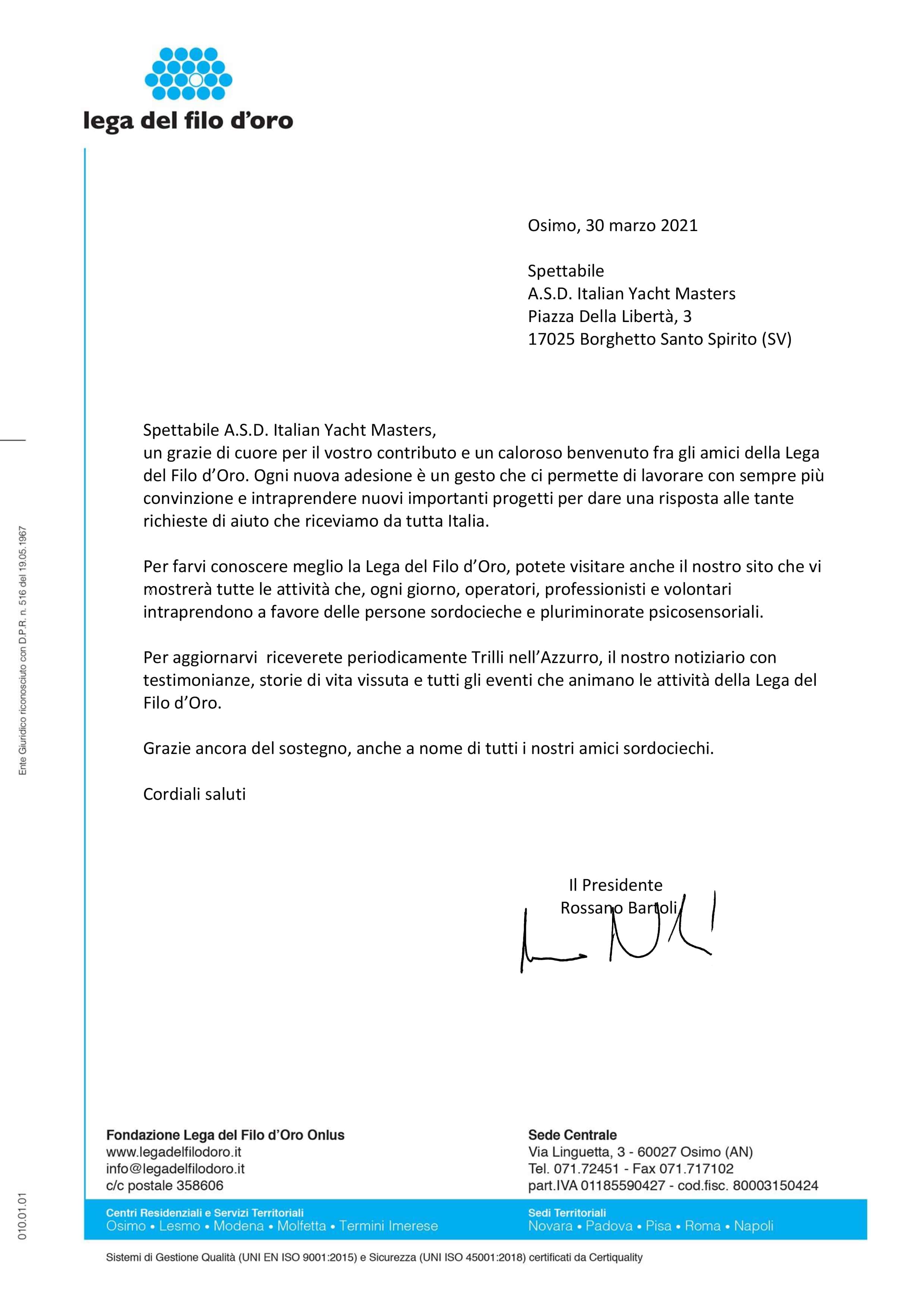 Italian Yacht Master is proud to have donated and joined "Lega del Filo d'oro."